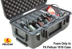 The 6 Revolver Foam by Case Club holds 6 revolvers in the Pelican™ 1550 Case. It is ideal for firearms training classes, police departments, gun enthusiasts, and anyone looking to transports their firearms. For those who need to transport & store their handgun safely, there is no better option. This universal insert holds various sized revolvers for versatility and convenience, and its quickdraw design allows for easy and fast access to the revolvers. Extra cutouts in place to allow for storage of extra items such as ear wear and eyewear. The foam is a tough military grade polyethylene that will hold up to constant use. The case itself (which you should already own) is guaranteed for life against breakage & defects so you know your pistols will be safe for years and even decades to come.