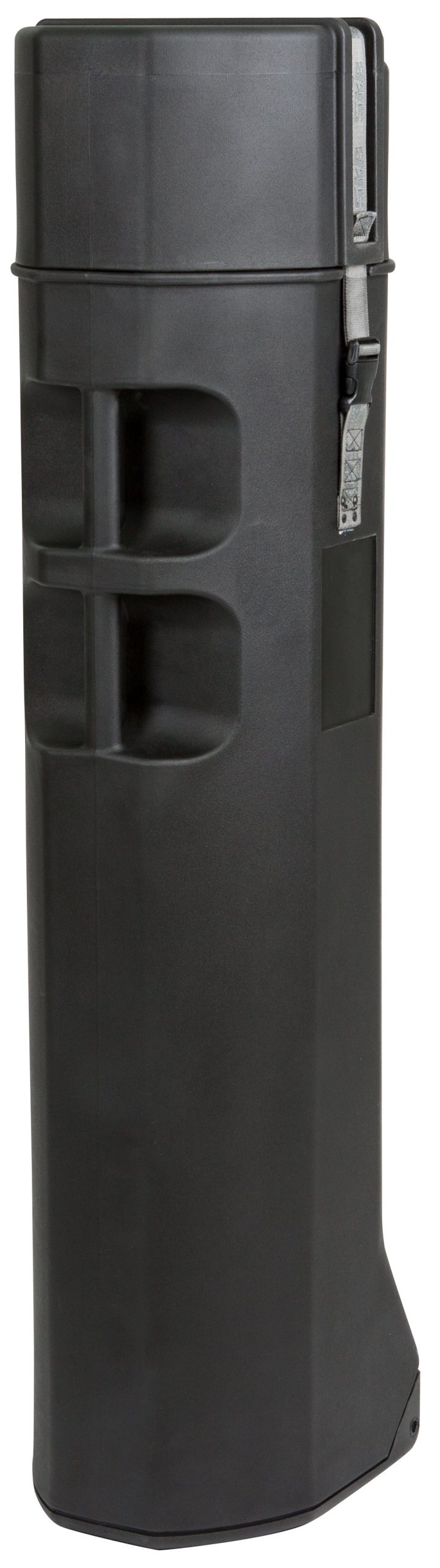 Roto molded of rugged Linear Low Density Polyethylene, this case is designed with internal foam in the base and lid to keep equipment secure and protected. The case has internal dimension of 50″ tall with a diameter of 11″, and features a sturdy, high-tension slide release buckle with heavy-duty web straps for easy closure, room on both sides to adhere shipping labels, two molded-in ergonomic carrying handles, and in-line skate style wheels for easy transportation. This case comes with an Unconditional Lifetime Warranty.