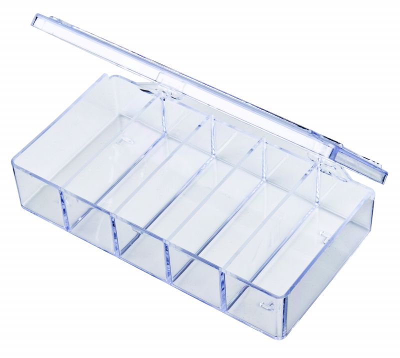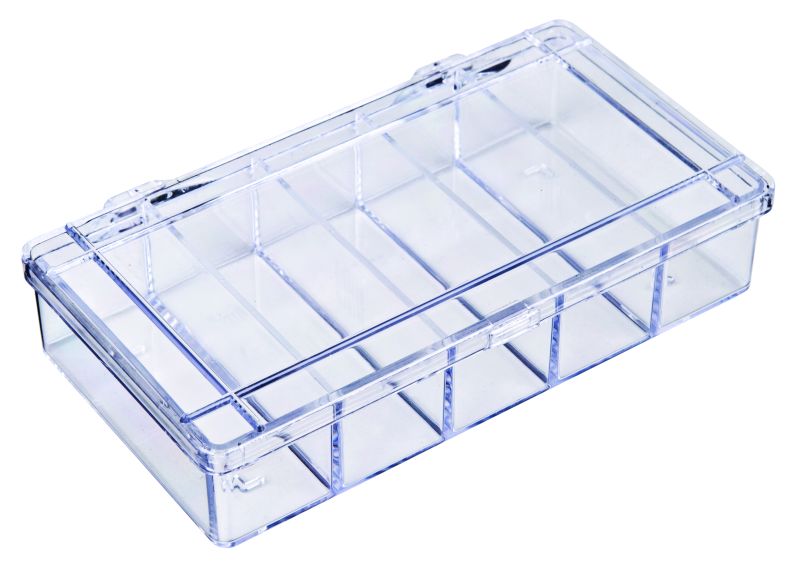 The A-Series compartmented box is constructed of styrene and offers excellent clarity for product display and merchandising.
