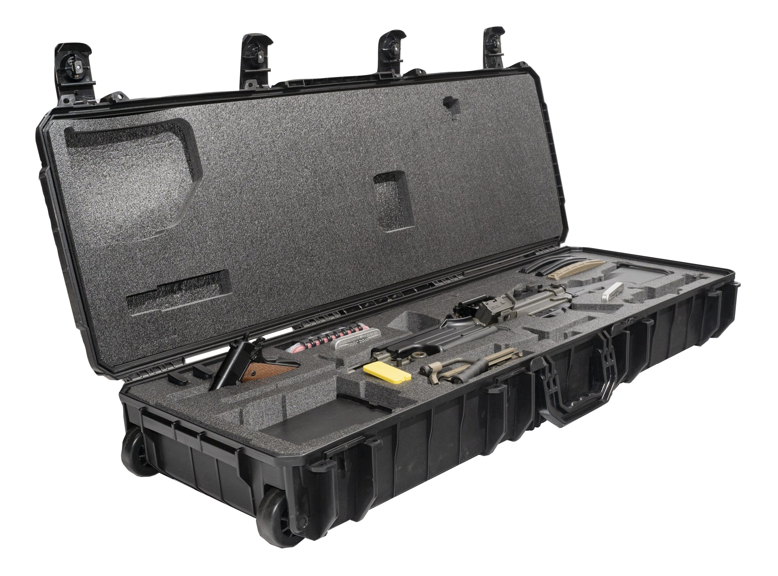 The Case Club FN M249S Rifle Case features precision-cut custom foam inserts designed to securely hold and protect the FN M249S or FN M249S PARA rifle along with its essential accessories. The interior foam is expertly fabricated to fit the specific contours of the firearm and included components, providing excellent protection against impact and movement during transport. This case accommodates one FN M249S or FN M249S PARA rifle, two drum magazines, three 5.56 thirty-round magazines, one semi-auto pistol, two pistol magazines, one standard or PARA buttstock, one standard or PARA upper barrel assembly, and one bolt locking device.