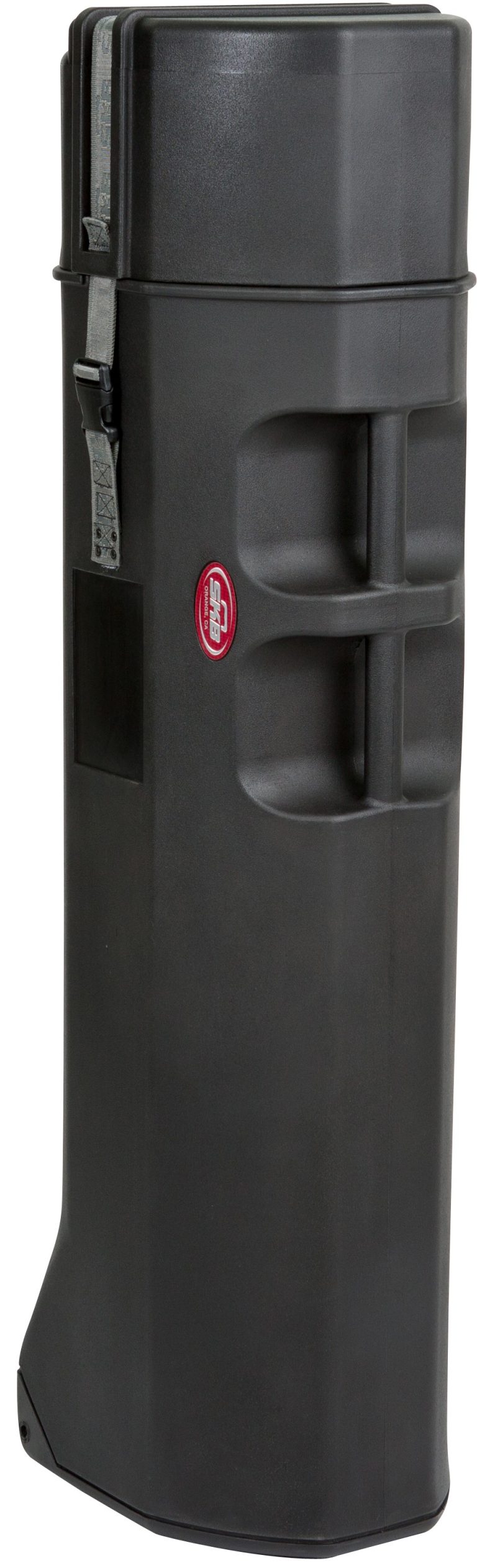 Roto molded of rugged Linear Low Density Polyethylene, this case is designed with internal foam in the base and lid to keep equipment secure and protected. The case has internal dimension of 46″ tall with a diameter of 11″, and features a sturdy, high-tension slide release buckle with heavy-duty web straps for easy closure, room on both sides to adhere shipping labels, two molded-in ergonomic carrying handles, and in-line skate style wheels for easy transportation. This case comes with SKB’s Unconditional Lifetime Warranty.